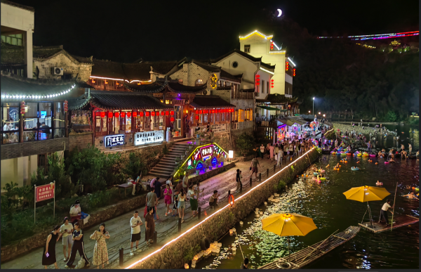 酒足飯飽后,團隊前往旅程第六站:上河村。上河村正在上映“不夜上河”· 夢幻水燈市集活動,匯聚于水面上的每一盞水燈,都像是星星落入凡間,承載了無數的心愿和期待!市集上,各式各樣的文創產品琳瑯滿目,每一件都蘊含著匠人的心血。大家紛紛被這浪漫的景象所陶醉。