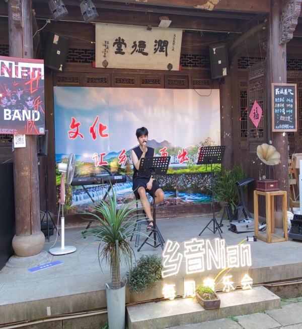 來到村中潤德堂,大家被一場別開生面的鄉村演唱會所吸引,歡快的旋律、質樸的歌聲回蕩在村落,大家一邊欣賞著音樂,一邊乘涼,無比愜意。