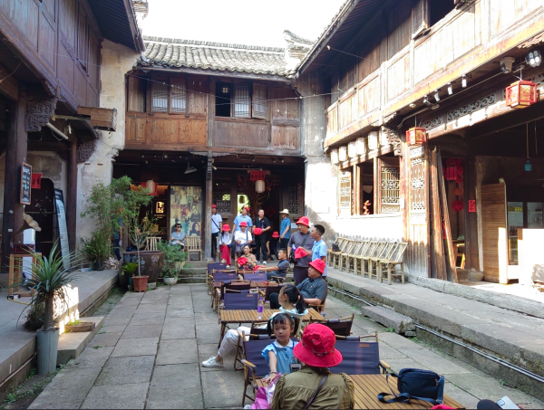 中午,我們來到旅程第四站:嵩溪村八字臺門用餐,嵩溪村也是浦江的一個美麗的古村落,2019年12月25日,入選我國*批國家森林鄉村名單。古色古香的環境讓大家食欲大增,一道道特色美食讓人回味無窮。